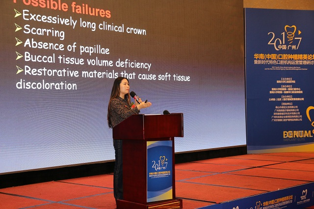 来自广东省口腔医院的徐淑兰主任针对美学区种植修复长期稳定的软组织稳定展开授课: