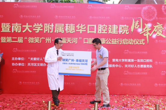 为了更好地服务市民群众,践行社会主义核心价值观,传递文明,共筑微笑广州,穗华口腔医院与暨南大学附属第一医院口腔科经共同研究决定,2016年再次依托“关爱好人”穗华口腔工作站开展惠民公益行动,于今日正式启动第二届“微笑广州·幸福天河”口腔健康公益行。