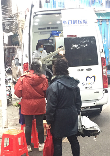 口腔检查车外等候检查的街坊朋友