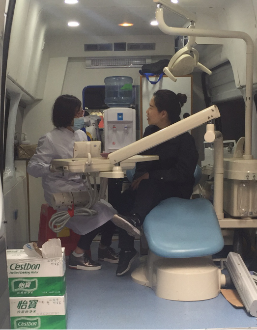 居民在口腔检查车上检查口腔