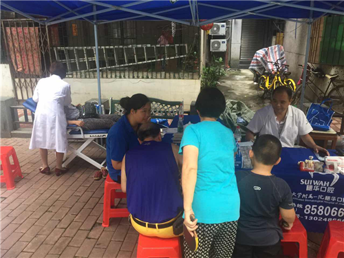医生为居民群众检查口腔,解决大家对口腔问题的困惑,同时为朋友们科普口腔健康保健,需要注重牙齿清洁及护理工作。