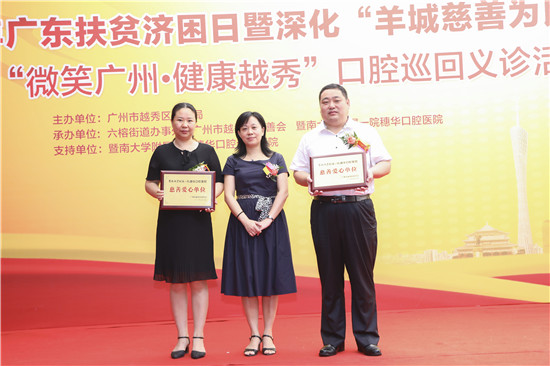为落实2018年广东扶贫济困日活动及深化“羊城慈善为民”行动创建全国“慈善之城”的部署,7月19日上午,越秀区慈善会携手穗华口腔医院在越秀区六榕街文化广场(六榕大厦旁)共同启动第二届“微笑广州·健康越秀”口腔巡回义诊活动。广州市慈善服务中心副主任周新、越秀区民政局副局长陈汉荣、六榕街道办事处党政办主任黄穗珠及各街道办领导、穗华口腔医院领导等100多人参加了当天的活动。