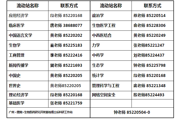 六、各流动站简介、招收方向及主要合作导师等信息(点击链接)。
