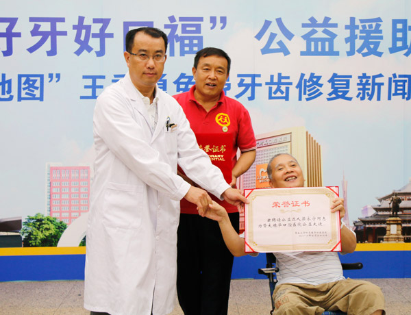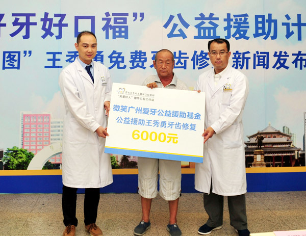 曾经因举报他人被打掉牙齿的“扫黄地图”王秀勇,如今获得免费牙齿修复的援助,这是记者在广州穗华口腔医院“关爱好人”穗华口腔工作站获悉。7月26日,“关爱好人”穗华口腔工作站于广州穗华口腔医院正式启动“好人好梦想·好牙好口福”公益援助计划。