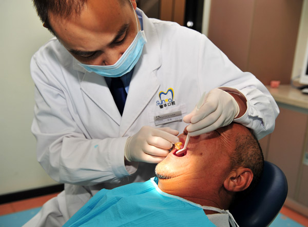 广州穗华口腔医院张涛医生准备为王秀勇进行牙齿修复