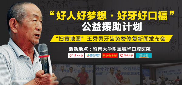 “扫黄地图”王秀勇曾经因举报“扫黄”被打掉四颗牙齿,给生活带来很多不便,也曾获得过“天河好人”的资助。前不久,老人与“天河好人”联系,说出自己心底的梦想——希望自己的牙齿能够得到修复,提升自己的生活质量,再到曾经生活的地方东莞看一看。在“天河好人”的帮助下,王秀勇先生已在广州穗华口腔医院获得免费牙齿修复的援助。