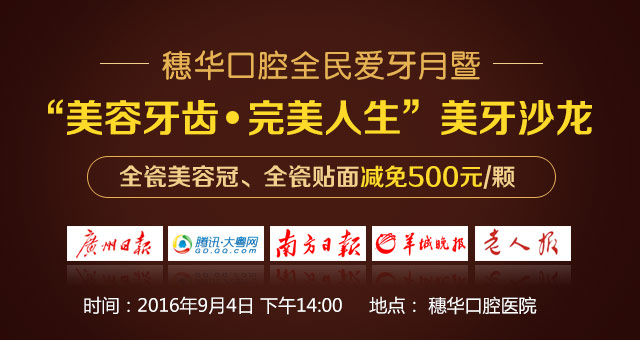 9月4日14:00,羊城地铁报、大粤网将携手穗华口腔医院于举办“美容牙齿▪完美人生”美牙沙龙。届时,口腔行业内口腔修复名医专家将为广大患者解疑释惑,让患者实现美丽梦想,塑造符合美学标准的亮白皓齿和迷人微笑,打造高颜值。