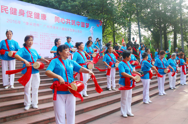 广州老年人重阳登山活动现场