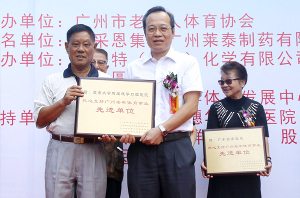 当天,广东省委原常委、广东省军区原司令员张巨惠、广州市原副市长戴治国、广州市原副市长姚蓉宾、广州市老年人体育协会副主席兼秘书长欧阳丹、康采恩集团广州莱泰制药有限公司市场部总监毛建林、广州穗华口腔医院孔卫东副院长等领导和嘉宾出席了活动,各企事业单位350支登山队伍共1万多名长者参加本次活动。