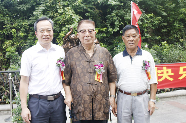 广州穗华口腔医院副院长孔卫东(左)、省军区原司令员张巨惠(中)、市原副市长戴治国(右)