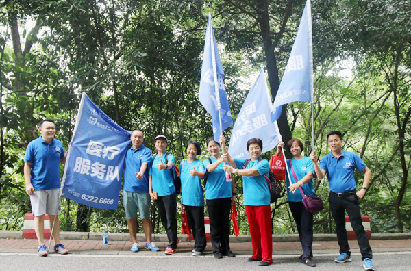 在广州市老年人重阳大型登山活动现场。随着主持人一声令下,来自广州市多个区的团队徒步向白云山进发,路上,广州穗华口腔医院的医护人员向登山活动的老人发放扇子、凉茶和矿泉水等物品,为保障这次活动的顺利开展,广州穗华口腔医院还专门派出两台急救车辆,随行保障参加活动人员的安全。