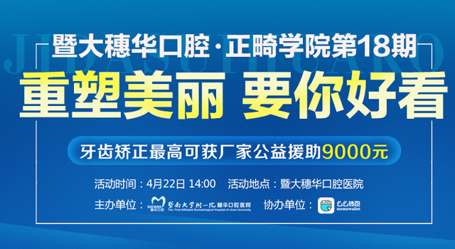 为了解除您对牙齿美观的困扰,还您自信笑容,重塑美丽,穗华口腔医院联合么么钱包将于2017年4月22日举办穗华口腔·正畸学院第18期“重塑美丽 要你好看”。届时,口腔行业内牙齿矫正名医专家将为广大正畸患者揭开牙齿矫正的神秘面纱,为正畸患者设计矫牙方案,让正畸患者实现美丽梦想,重拾自信笑容。