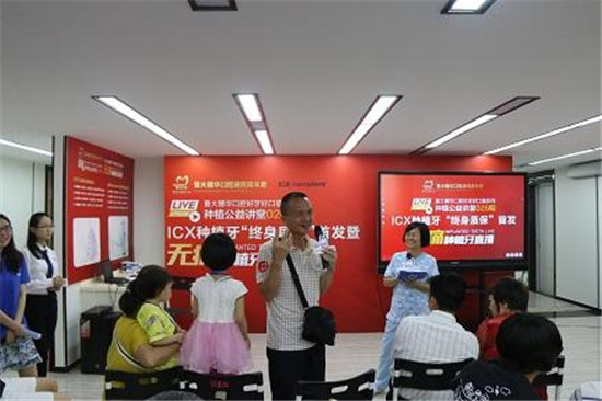 活动现场广州穗华口腔荔湾院区李咏旭院长为幸运观众抽取了德国ICX厂家提供赞助的ICX品牌种植体,抽得奖品的患者高兴地笑了起来!