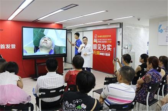 手术从开始到结束不过10分钟左右,大家一边看着直播一边问着手术的效果,这时坐在第一排的黄叔坐不住了,他站起来说:“我是昨天在这儿种的三颗牙,稀里糊涂就种完了牙,一点都不痛,真的,没有感觉到痛就种完了牙,我今天来就是想看一看种植牙的过程是怎么回事?当时就像电影里的猪八戒吃‘人参果’,没有尝到味道就没有了!”