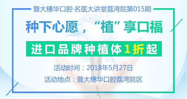 5月27日,穗华口腔荔湾院区将举办穗华口腔·名医大讲堂第15期之《种下心愿“植”享口福》活动,为缺牙市民带来牙齿缺失修复绝招,近距离了解种植牙前沿技术,植下健康,植享口福。