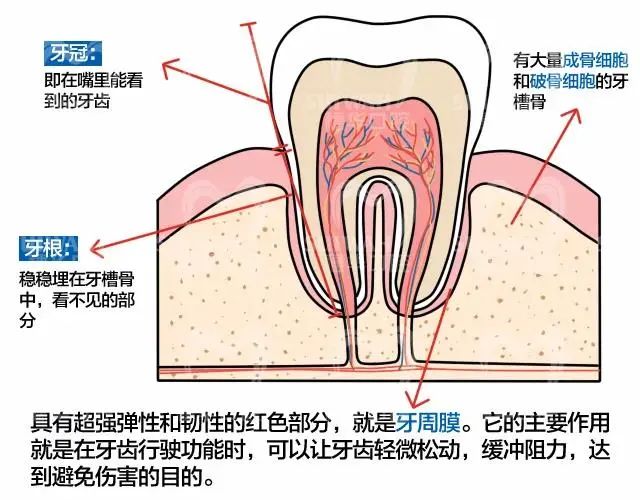 简单来说就是:牙齿受力——传递给牙槽骨——牙槽骨生长——牙齿移动。
