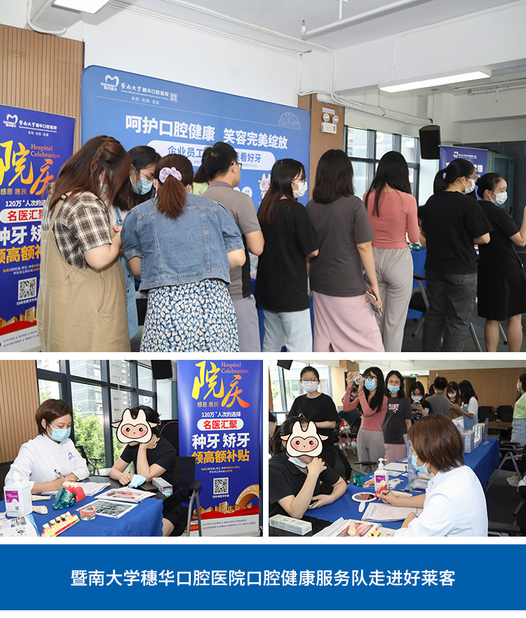 2022《全民口腔健康计划》“院庆名医汇聚 看牙高额补贴”惠民行动火热进行中!自7月以来,穗华口腔医院派遣多支口腔健康服务队伍,走进四十余家企事业单位,为数千名企业员工提供口腔健康公益检查、多项看牙补贴。