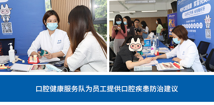 8月10日,穗华口腔医院口腔健康服务队来到好莱客,不仅免费为好莱客员工进行口腔健康检查,同时针对大家的口腔问题提出预防与治疗建议,以提升年轻人关于口腔疾病的防治意识,树立正确的预防观念。