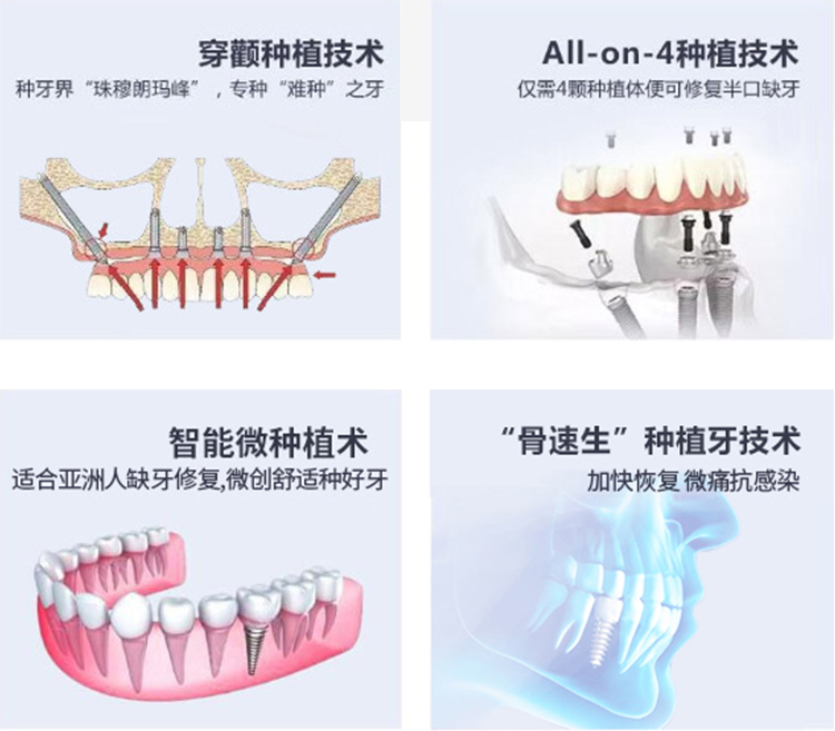 穗华口腔医院深耕种植临床多年,熟练掌握穿颧种植技术、ALL-ON-4种植技术等高疑难种植技术,针对各类高龄无牙颌、疑难半口、全口缺牙等特殊缺牙患者,拥有专业而丰富的种植临床经验,