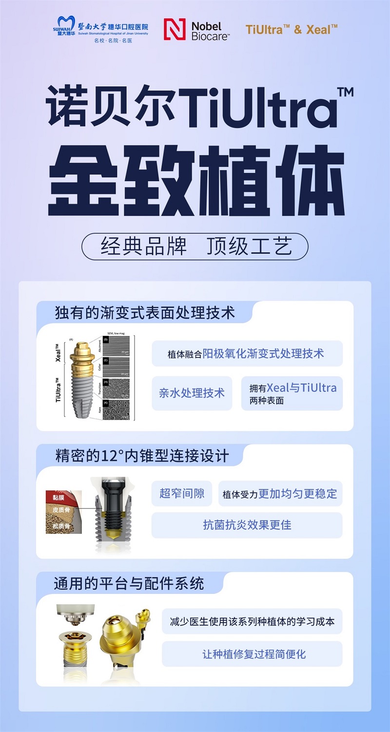 为进一步提升中老年人生活品质,解决全口/半口缺牙难题,穗华口腔医院率先引进瑞典诺贝尔TiUltra金致植体,并被诺保科授予“种植牙黏膜整合技术示范单位”。
