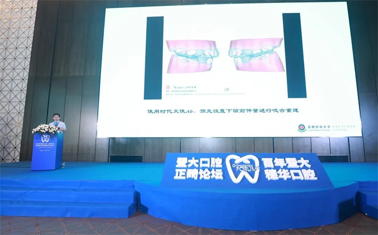 6月21日,在2023 第四届口腔 · 正畸论坛暨 II 类错合畸形矫治学术会议上,中华口腔医学会副会长、中华口腔医学会口腔医学计算机专业委员会主任委员、中华口腔医学会正畸专业委员会前任主任委员、首都医科大学附属北京口腔医院院长白玉兴教授分享的内容是《无托槽隐形矫治技术在 II 类错合畸形矫治中的应用》,全面介绍现有的 II 类错合矫治策略,并通过临床病例报告,详细解析无托槽隐形矫治技术在 II 类错合患者中的应用特点、适应证、应用方法及矫治效果,会场气氛热烈,爆发出阵阵掌声。