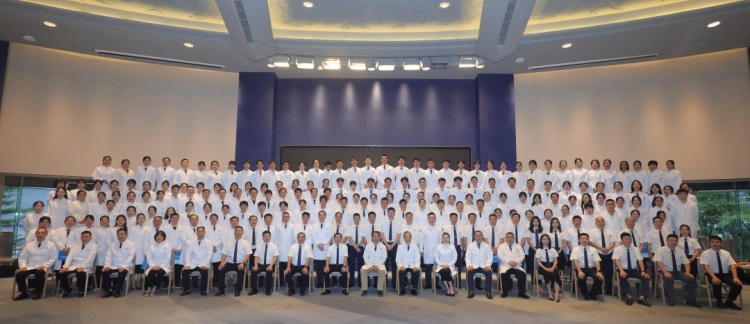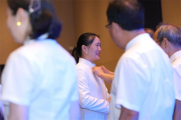 为树立青年医师敬畏之心与勤学之志,继承并弘扬尊师重道之义,穗华口腔医院集团国学文化老师曹辉先生现场指导出科医生向带教老师行三鞠躬礼,带教老师授予出科医生象征身份与职业、赋予责任与使命、承载理想与信念的白大褂。