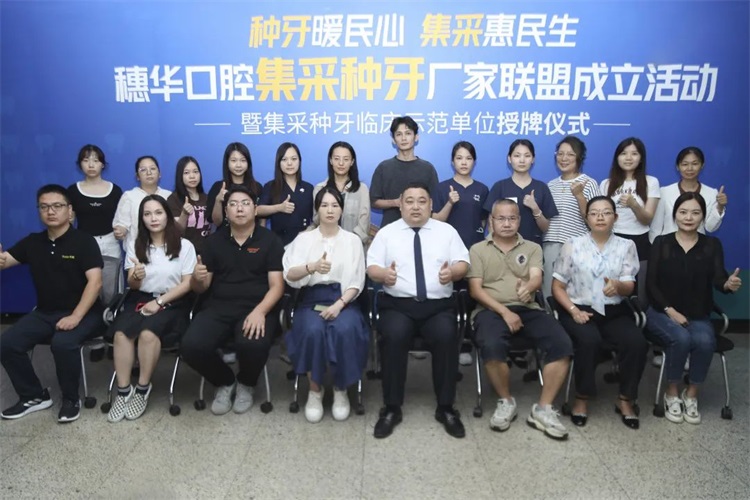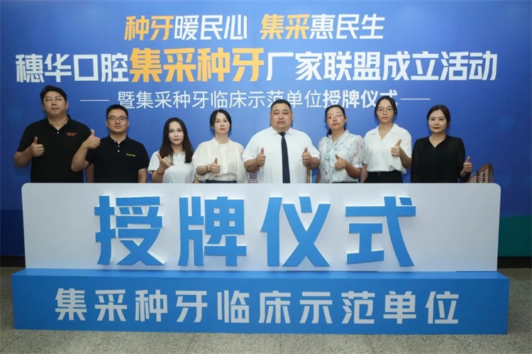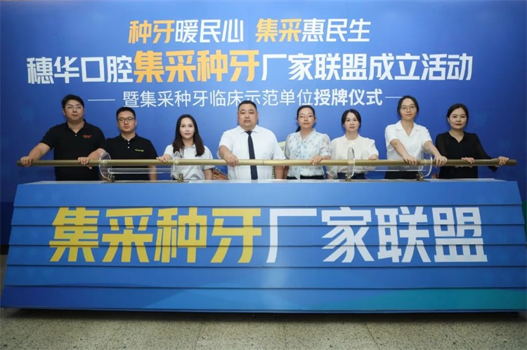 穗华口腔作为积极响应国家集采政策号召的良好示范,荣获“集采种牙临床示范单位”的荣誉。并与七大集采种植品牌厂商代表共同成立“集采种牙厂家联盟”,持续推进国家集采种牙全面落地,有效解决缺牙民众“种好牙难,种好牙贵”的难题。