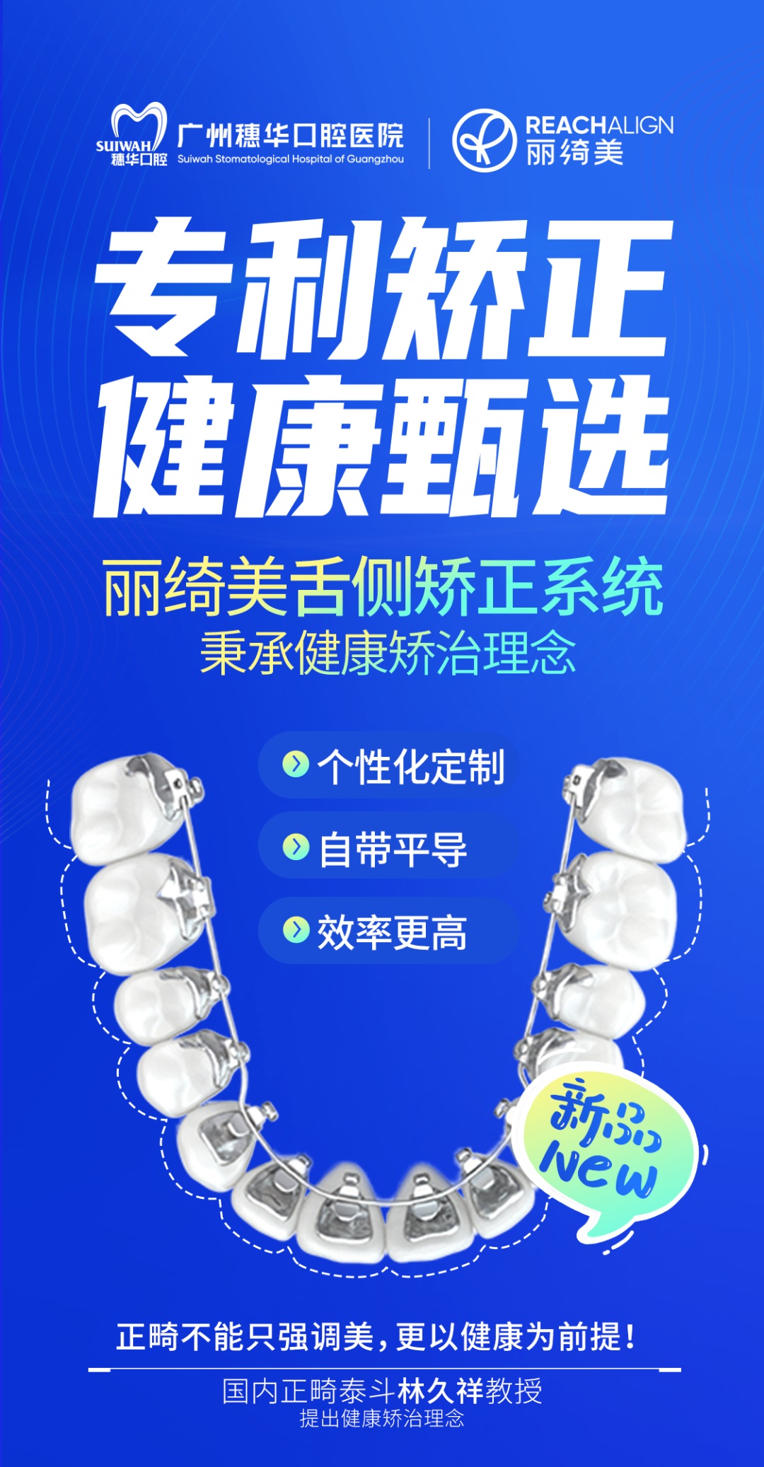 广州穗华口腔医院秉承“人才立院、专科强院、科教兴院”的宗旨,丽绮美舌侧矫治认证专家团队由正畸学科带头人孔卫东教授领衔,诸多正畸技术发明人、全球隐形矫治黑钻医生、优秀正畸精英组成,专家技术实力雄厚,由舌侧矫正国际品牌EBRACE瑞通公司生产矫治器,强强联合,实现专属的数字化精准正畸颜面管理,充分满足错合畸形患者个性化、复杂化、高难度的正畸需求,帮助众多患者恢复一口整齐好牙,拥有健康与自信。