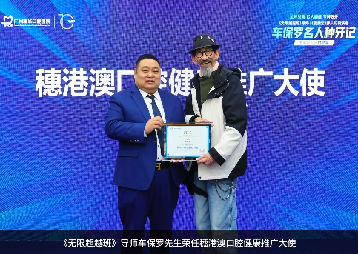 穗华口腔医院凭借其深厚的人文底蕴、学术精髓,以及精湛的诊疗技术、强大的专家团队和品质的服务赢得广泛赞誉,深受名人冠军的信赖和喜爱,已有多位老牌港星选择来穗华种牙。此次“鹿鼎记”中胖头陀的扮演者车保罗老师选择在穗华口腔进行全口种牙,并分享自己的种牙体验,不仅是对穗华口腔专家团队、先进技术和优质服务的高度认可,更是对穗华口腔品牌理念的深度信任。正如他在《鹿鼎记》中塑造的经典角色“胖头陀”,真正的品质经得起时间的淬炼。为持续推动大湾区口腔健康事业发展,穗华口腔邀请车保罗老师担任穗港澳口腔健康推广大使。