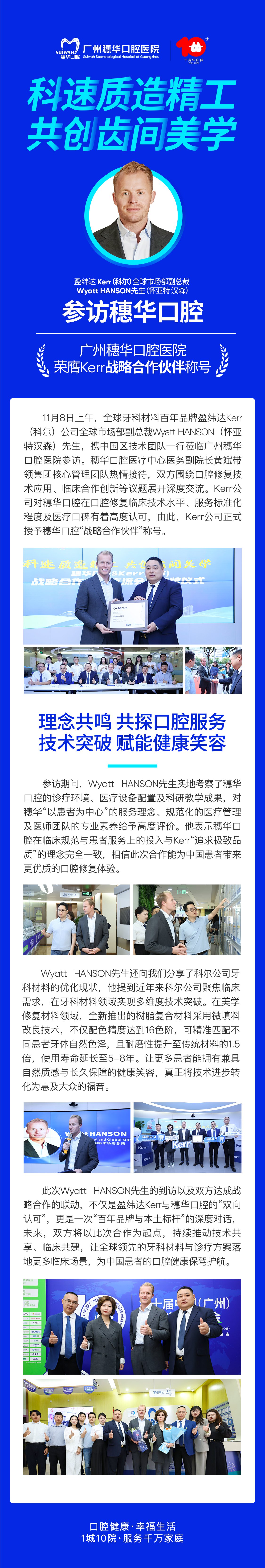 科速质造精工 共创齿间美学 | 科尔全球市场部副总裁Wyatt HANSON参访,广州穗华口腔医院荣膺Kerr战略合作伙伴称号......