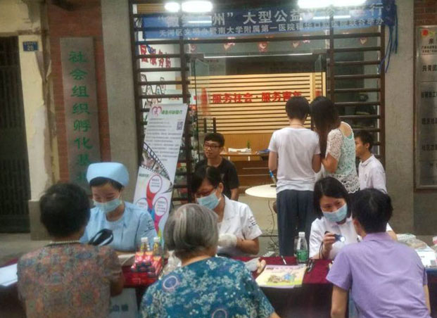 2015年8月1日,新月伊始,穗华口腔医院公益医疗团队怀着满腔热来到北京街盐运社区,开展了一场主题为“微笑广州”的口腔公益义诊活动,为居民们提供免费的牙齿检查、血糖血压测量、口腔咨询等,另附赠小礼品。
