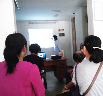 居民们在认真倾听口腔保健知识讲座