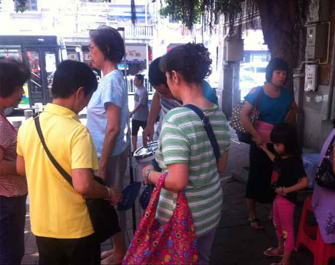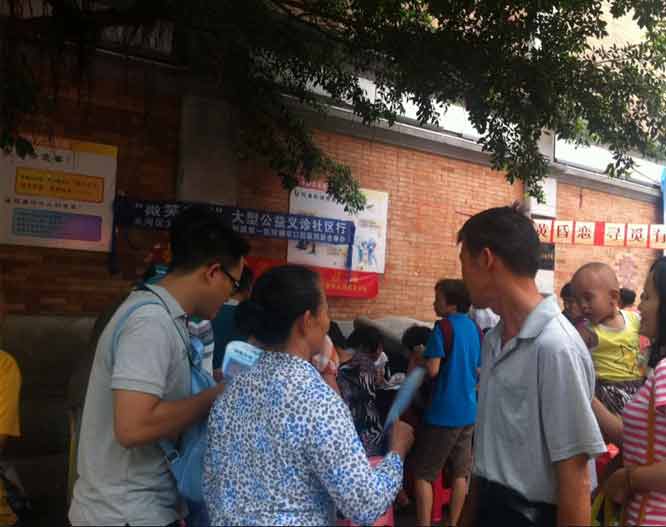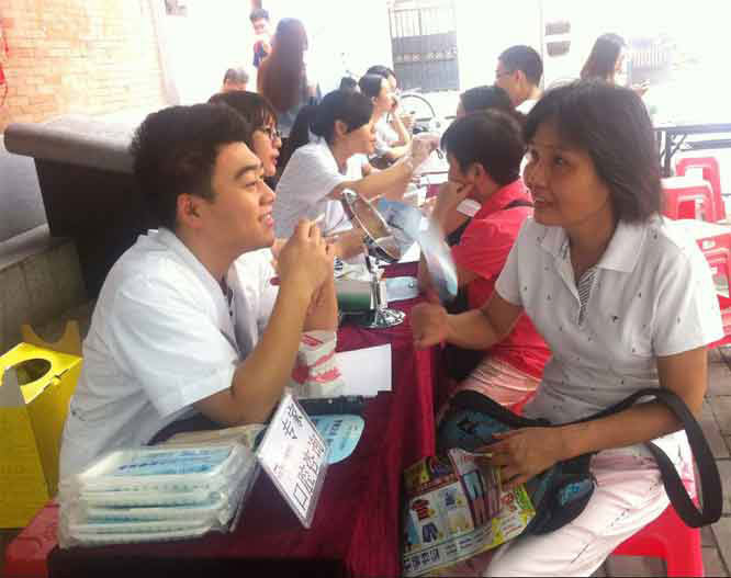 穗华工作人员为居民测量身高体重(版权归穗华口腔医院所有,如需转载请注明文章来源:穗华口腔医院 http://www.62266666.com)