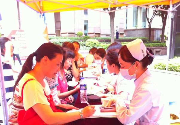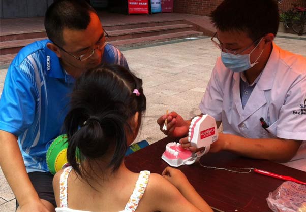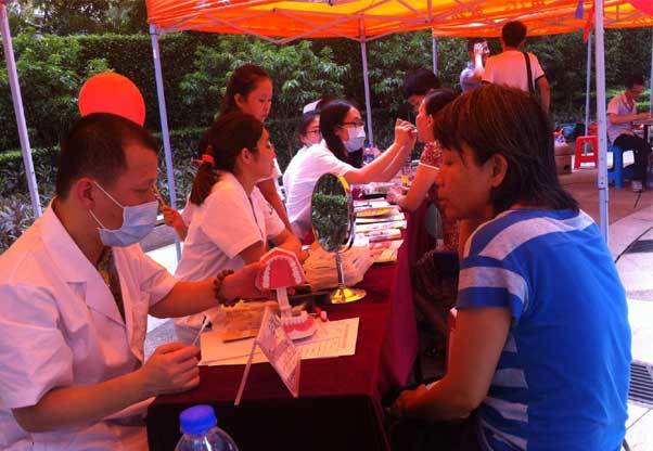 2015年7月4日,暨南大学附属口腔医院穗华口腔的公益医疗队来到天河文化广场,为街坊们提供口腔检查、血压血糖测量等义诊服务。