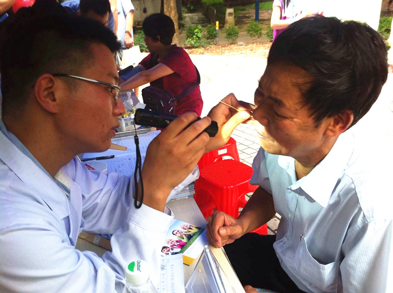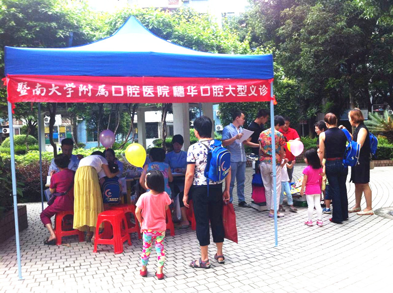 2015年6月4日,暨南大学附属医院穗华口腔的公益医疗队来到天河区林和街道德荣社区,为街坊们提供口腔检查、血压血糖测量等义诊服务。