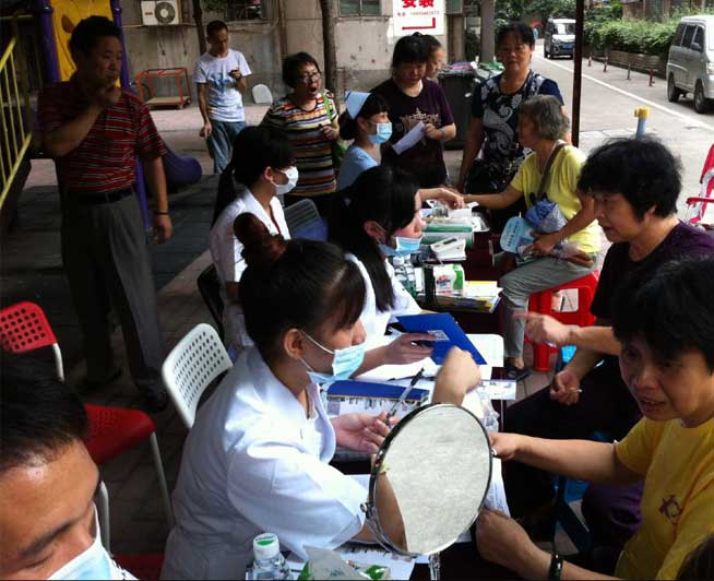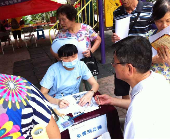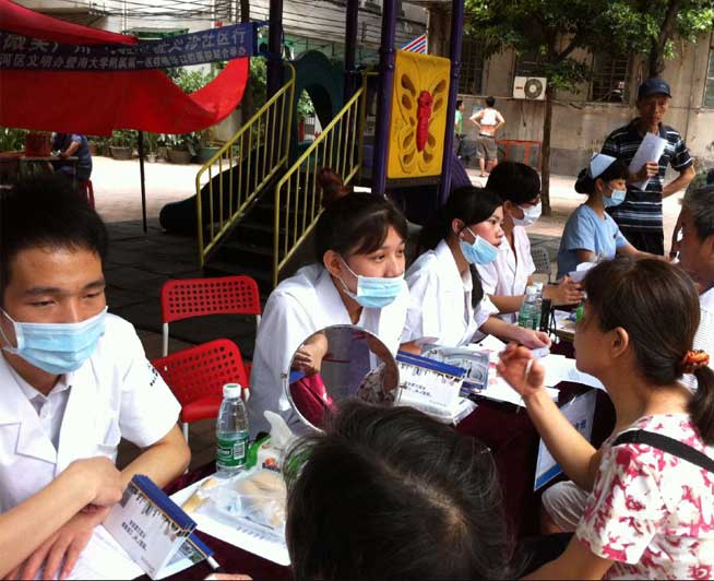 2015年7月15日,穗华口腔医院公益医疗队伍来到越秀定安里社区义诊,为居民带来免费的牙齿检查、身体检查、牙齿咨询等。