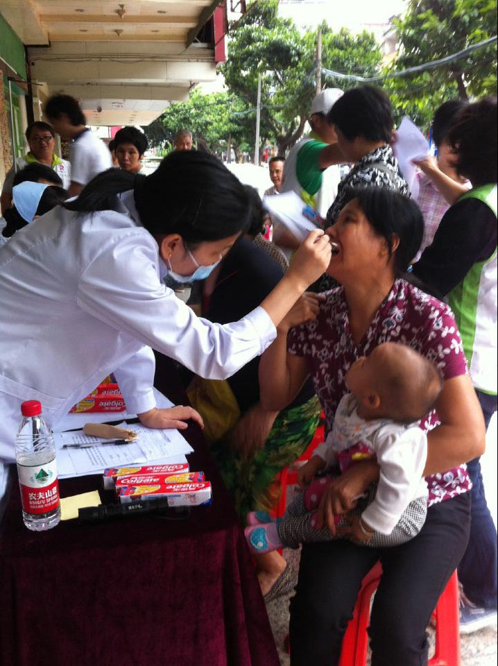 2015年10月10日,穗华口腔医院公益医疗队伍来到石牌社区,为人们开展“微笑广州”的公益义诊活动,给人们带来免费的口腔检查、口腔咨询、血糖血压测量等,不懈努力于提高人们的口腔健康保健意识,改善人们的口强健康状况。