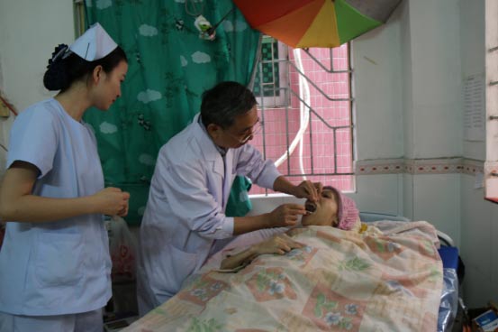 李主任为游阿姨检查牙齿
