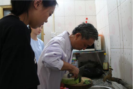 安排好记者之后,董云开始为妈妈做饭,淘米洗菜,穗华口腔医院李霁林主任和护士前去厨房看看是否需要帮忙。