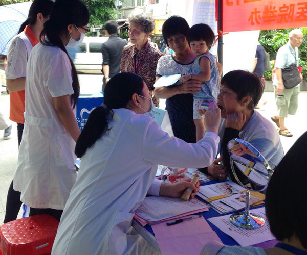 今日上午9点,穗华口腔医院的口腔医生来到建设二马路,在建设街家综的帮助下顺利开展了口腔健康义诊活动。此次义诊活动中,口腔医生为建设街的居民进行免费的口腔健康检查,并提供口腔诊疗和保健建议,得到市民的一致好评。