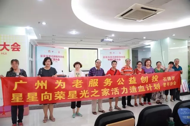 6月29日下午,来自广州天河区石牌办事处23条街道200多位长者欢聚一堂,听取广州市首个由老年协会获得的长者服务——“星星向荣”公益创投项目工作报告及石牌街老年协会周年汇报会。会上,石牌街老年协会汇报了服务长者带来的可喜变化,并现场启动长者“生日汇”等八项服务天河石牌街长者计划。