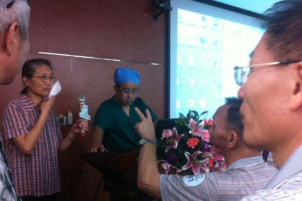 手术结束后,郑阿姨回到现场与大家互动