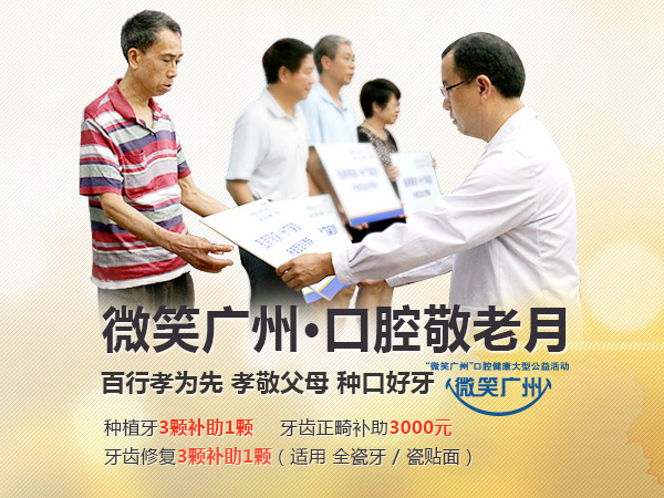 1、种植--当月凡有2颗以上种植牙需求的患者,均可享受“微笑广州·爱牙公益基金”补助的免费同类种植体1颗(种3颗或3颗以上补助1颗)