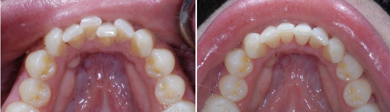 2、前牙拥挤使切牙的切割能力减弱,咬合关系错乱,牙齿容易因碰撞而受伤。同时,由于牙齿的自洁能力差,刷牙也不易刷净,牙缝中常有食物残渣,容易造成龋齿、牙周炎等疾患。