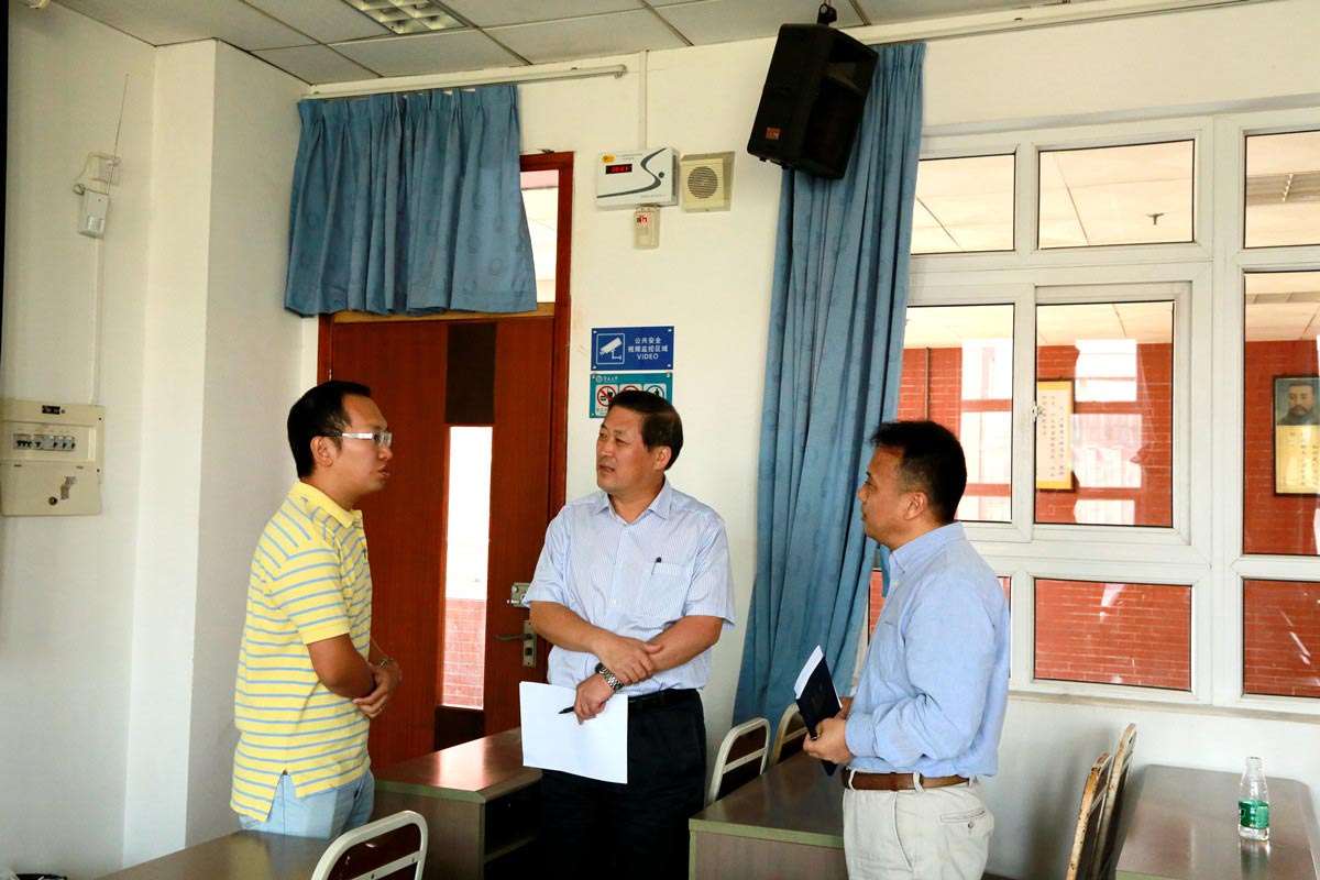 课间休息时,胡军与山峻老师就课堂内容、本科教学等进行了深入交流。他建议教师在教学中更多地融入创新元素,加大学生实践能力的培养;建议学院多为学生创造条件,让同学们走出课堂,走进企业,接触实际生产管理,多看多学,更要掌握“互联网+”等高新技术在行业中的应用。