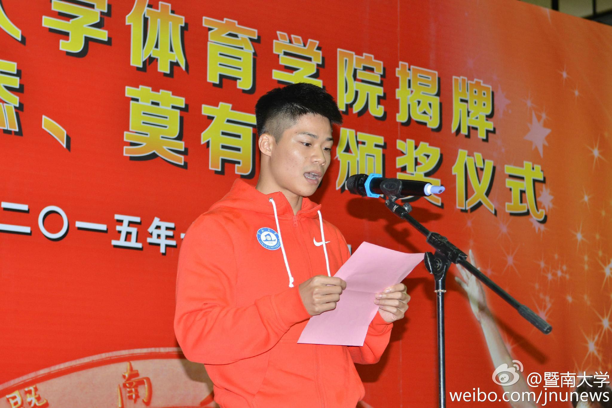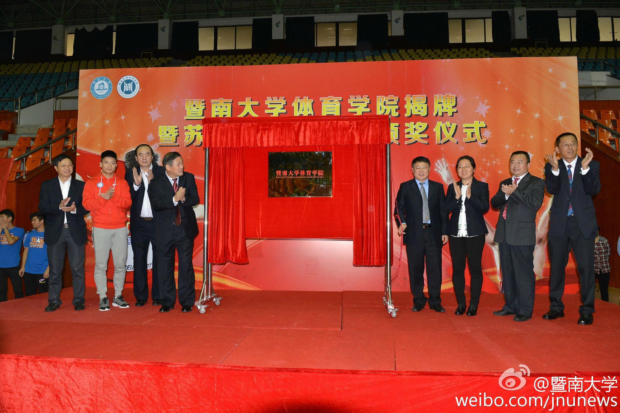 11月13日下午,暨南大学在邵逸夫体育馆举行体育学院揭牌暨苏炳添、莫有雪颁奖仪式。