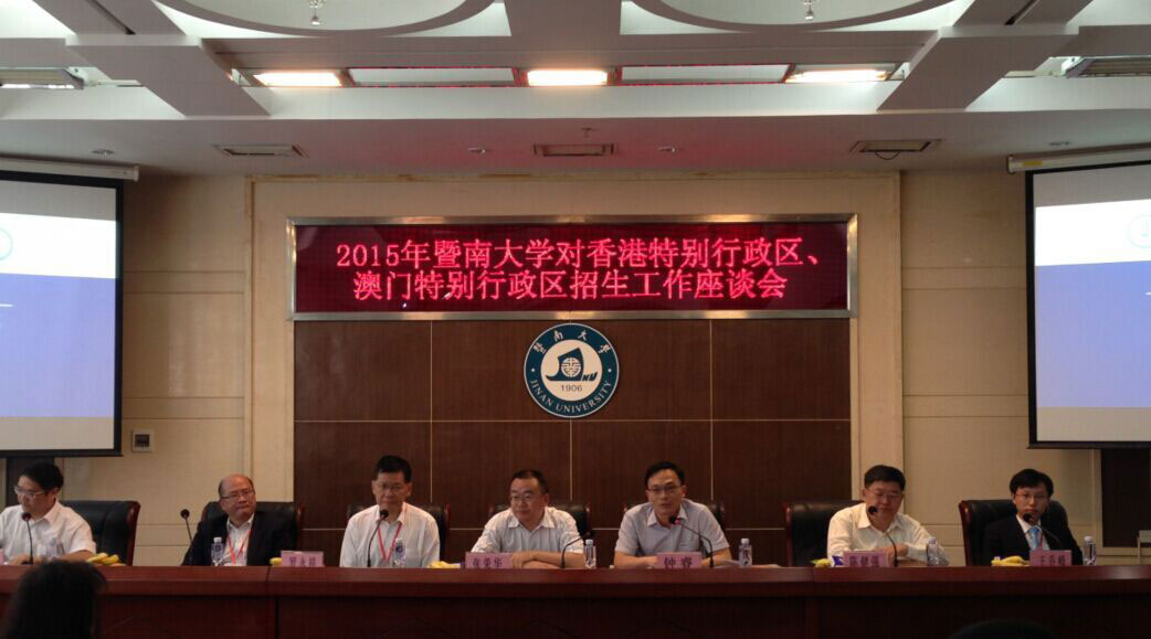 11月22日下午,2015年暨南大学对香港、澳门特别行政区招生工作座谈会在校本部举行。中央人民政府驻澳门联络办公室文化教育部处长钟睿、副校长张荣华,以......