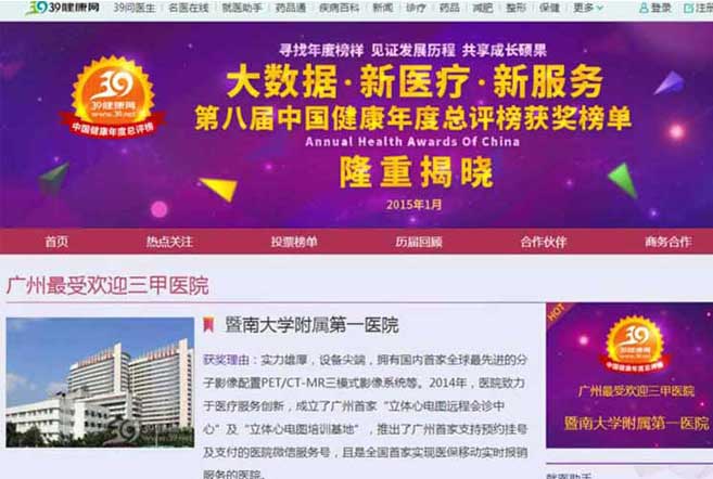 2010年至2014年,附属第一医院连续五年被中国健康年度总评榜评选为“广州十佳三甲医院”。获奖理由:实力雄厚,设备尖端,拥有国内全球先进的......