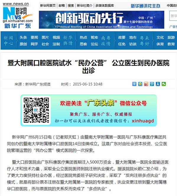 新华社关注附属口腔医院试水“民办公营”公立医生到民办医院出诊