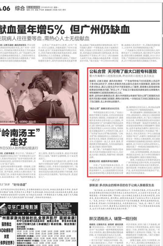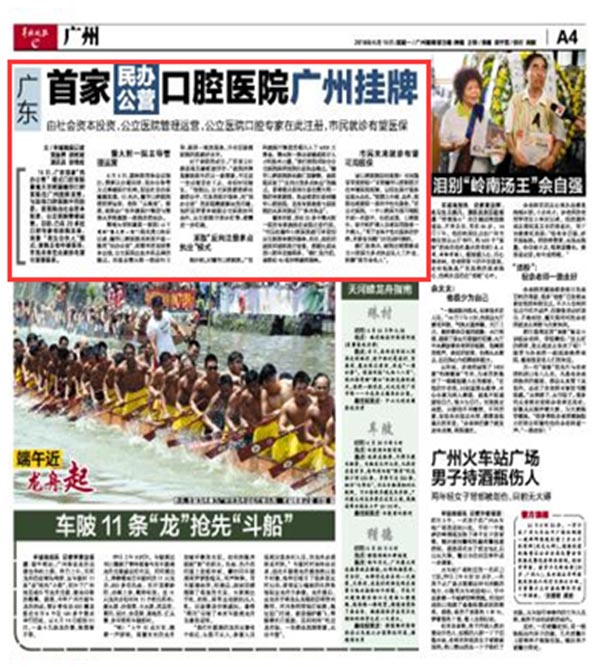 《南方日报》报道中国民办公营口腔医院挂牌营业